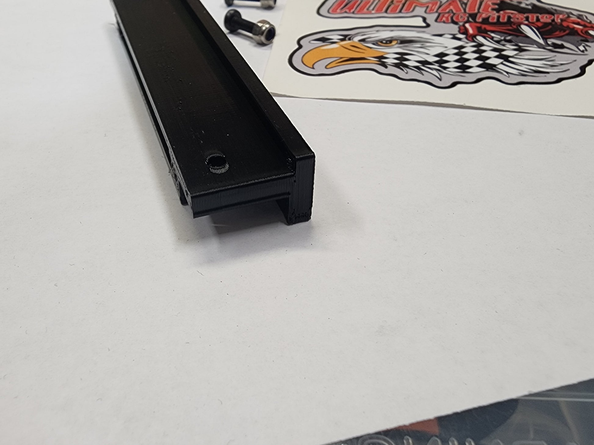 Made from tpu, these are rubber based and durable beyond belief. I even cranked up the infill to make them more solid. Added a lip to the front to protect the hood even further. Held on with 2- 3m screws and lock nuts (included). Once attached to the body it simple slides over the front bumper when mounting. Keeping you hood down, increasing aerodynamics, and protecting your investment.
