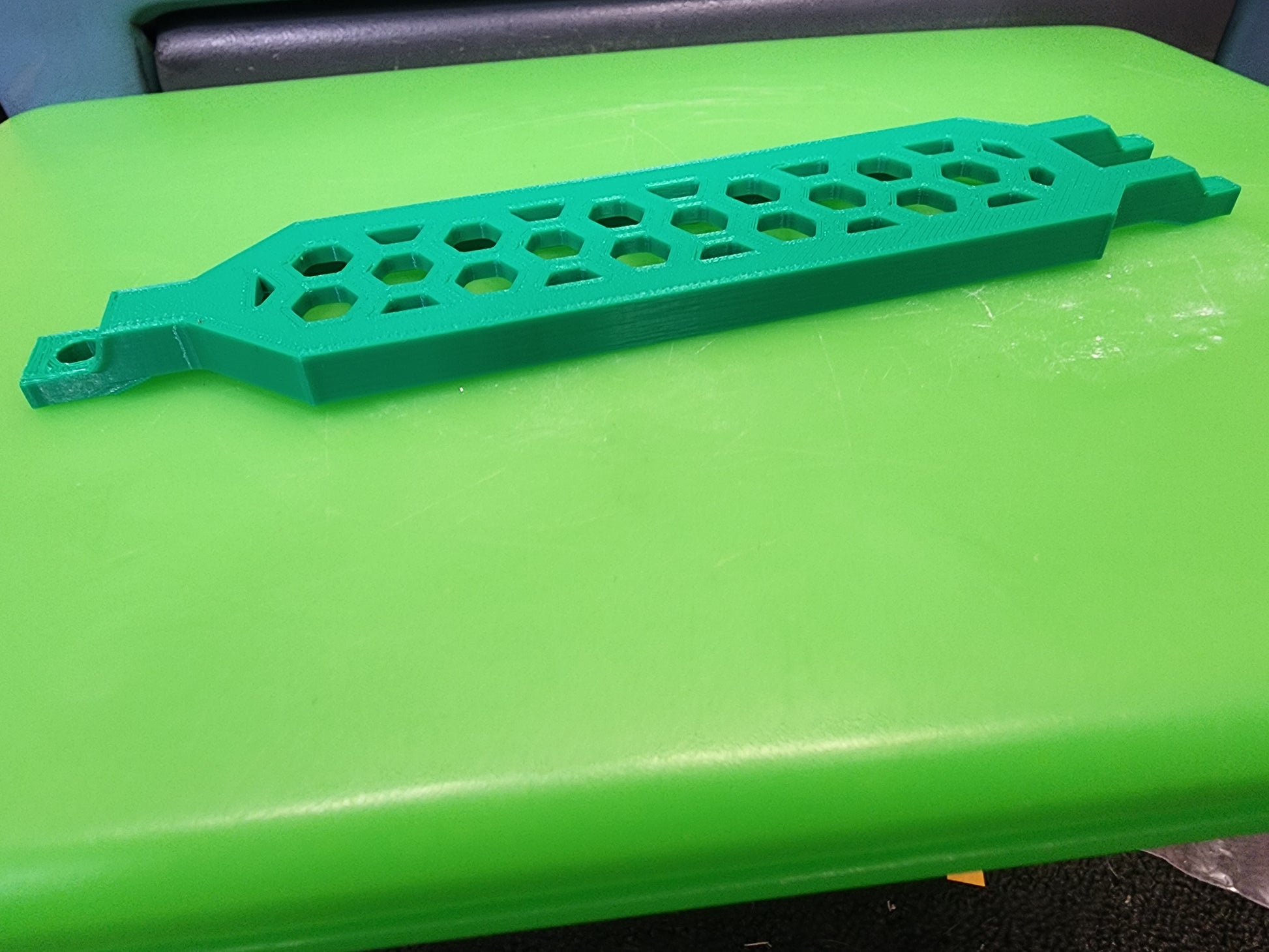 Thick but light, added some flare to a normally bland looking part. Tighter fit also keeps the battery from shifting up and down, allowing for better handling. These have a crossed infill, not solid. Keeps the weight down, though does not sacrifice durability with all the extra coverage.